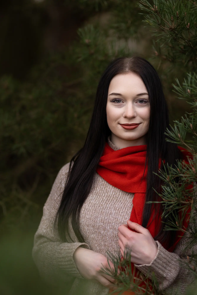 An einem dieser stillen, kalten Wintertage war ich mit Mara im Wald bei Borstel unterwegs – eine Location, die du vielleicht schon aus früheren Shootings kennst. Diesmal hatten wir eine besondere Stimmung: Der Himmel war leicht bedeckt, die Sonne stand tief, und genau diese Mischung hat uns ein wunderbar weiches Licht beschert. Um einen Farbtupfer ins Spiel zu bringen, hatte ich für Mara einen leuchtend roten Schal dabei – der Kontrast zum ruhigen Naturhintergrund könnte nicht schöner sein.